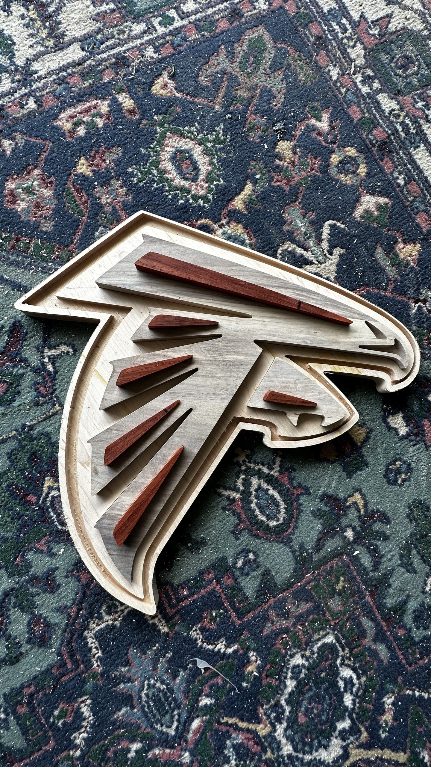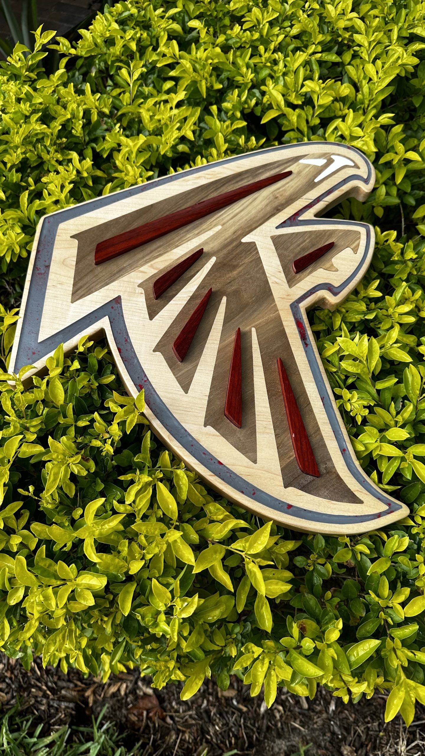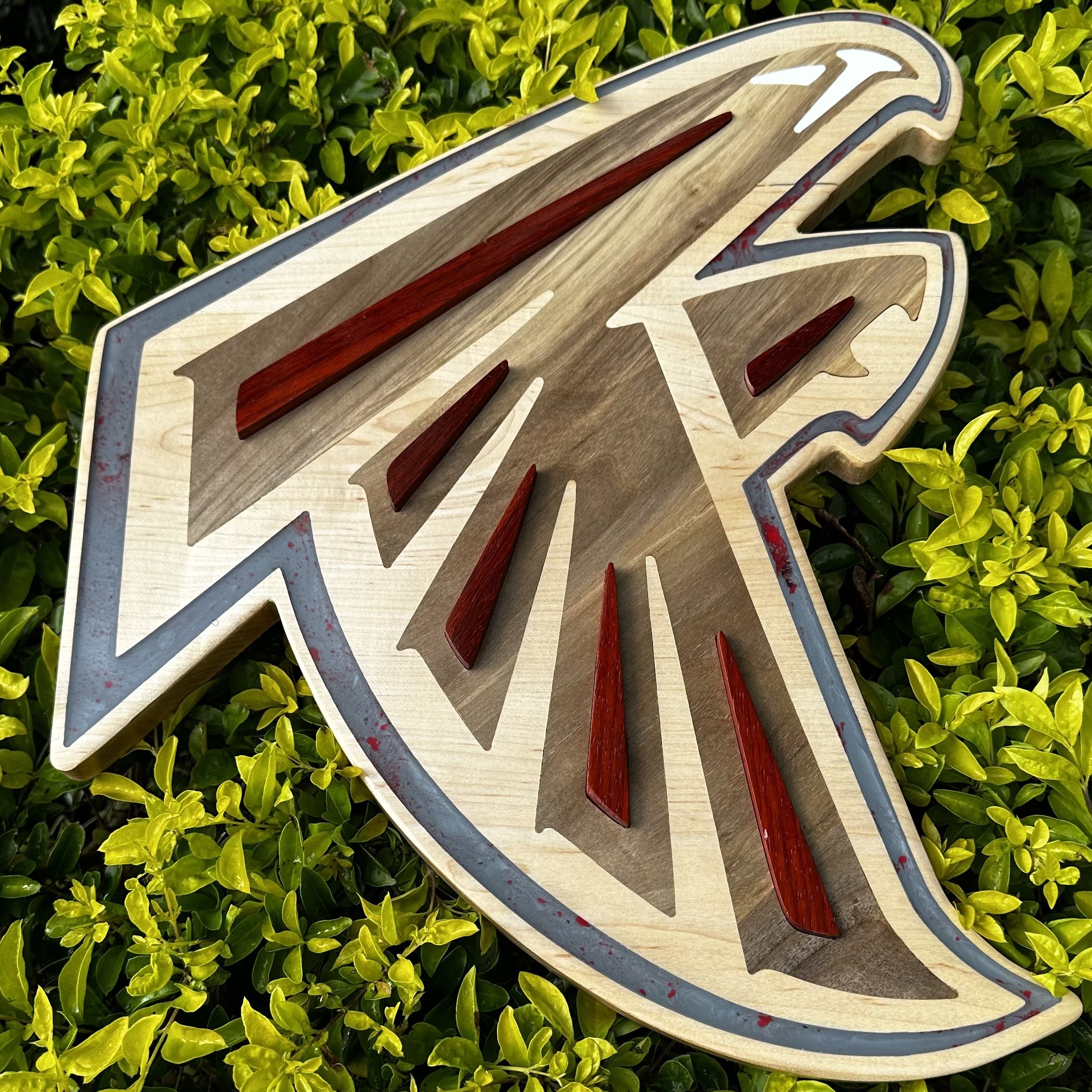 By Admin12 / June 27, 2025 Atlanta Falcons ATL Dirty Bird. Frederick ‘Freddie’ Falcon is made of hard maples with black walnut inlay for this hardwood bird, with paduak accents on the wings. There are also silver, white and red acrylic highlights.