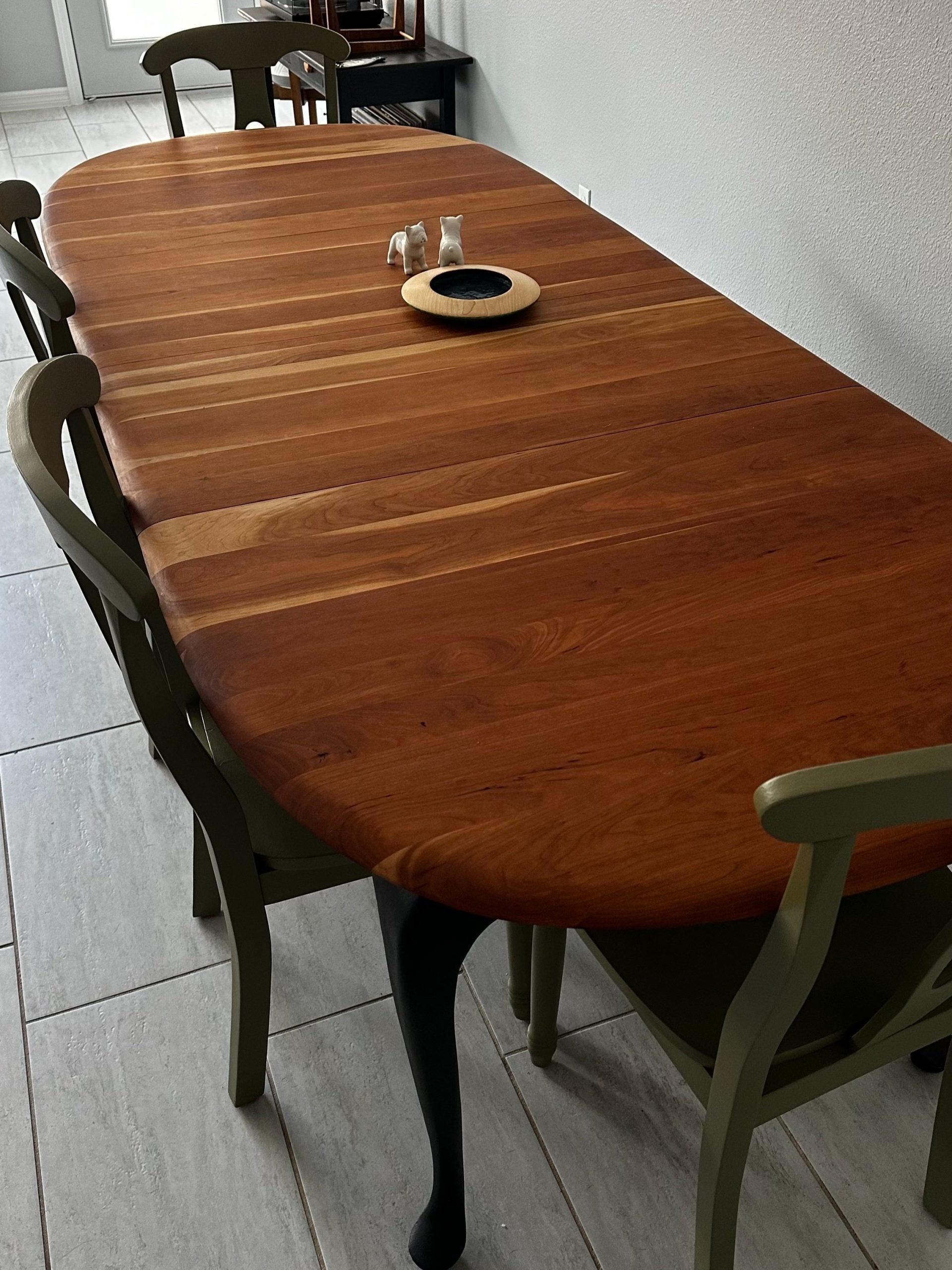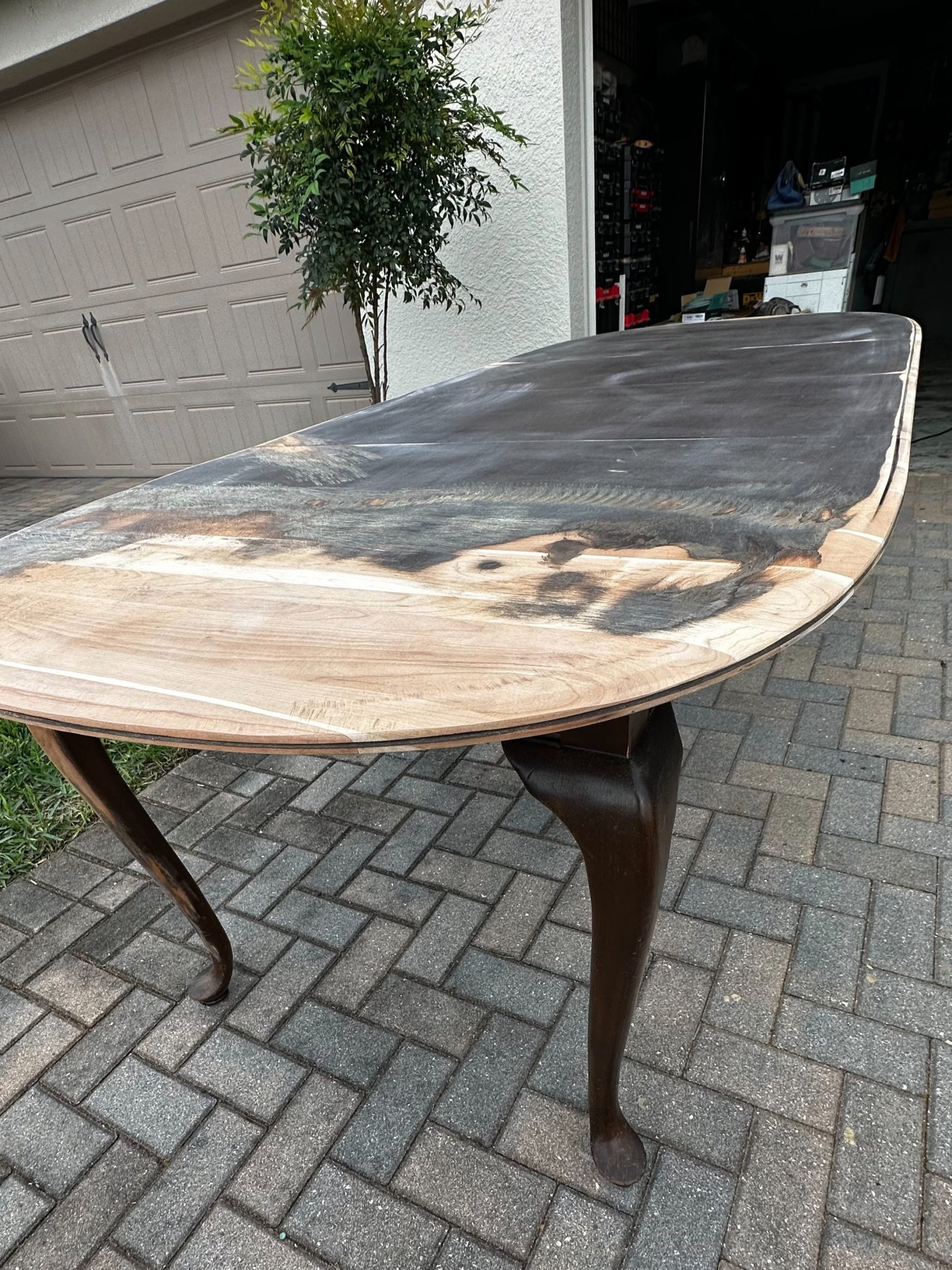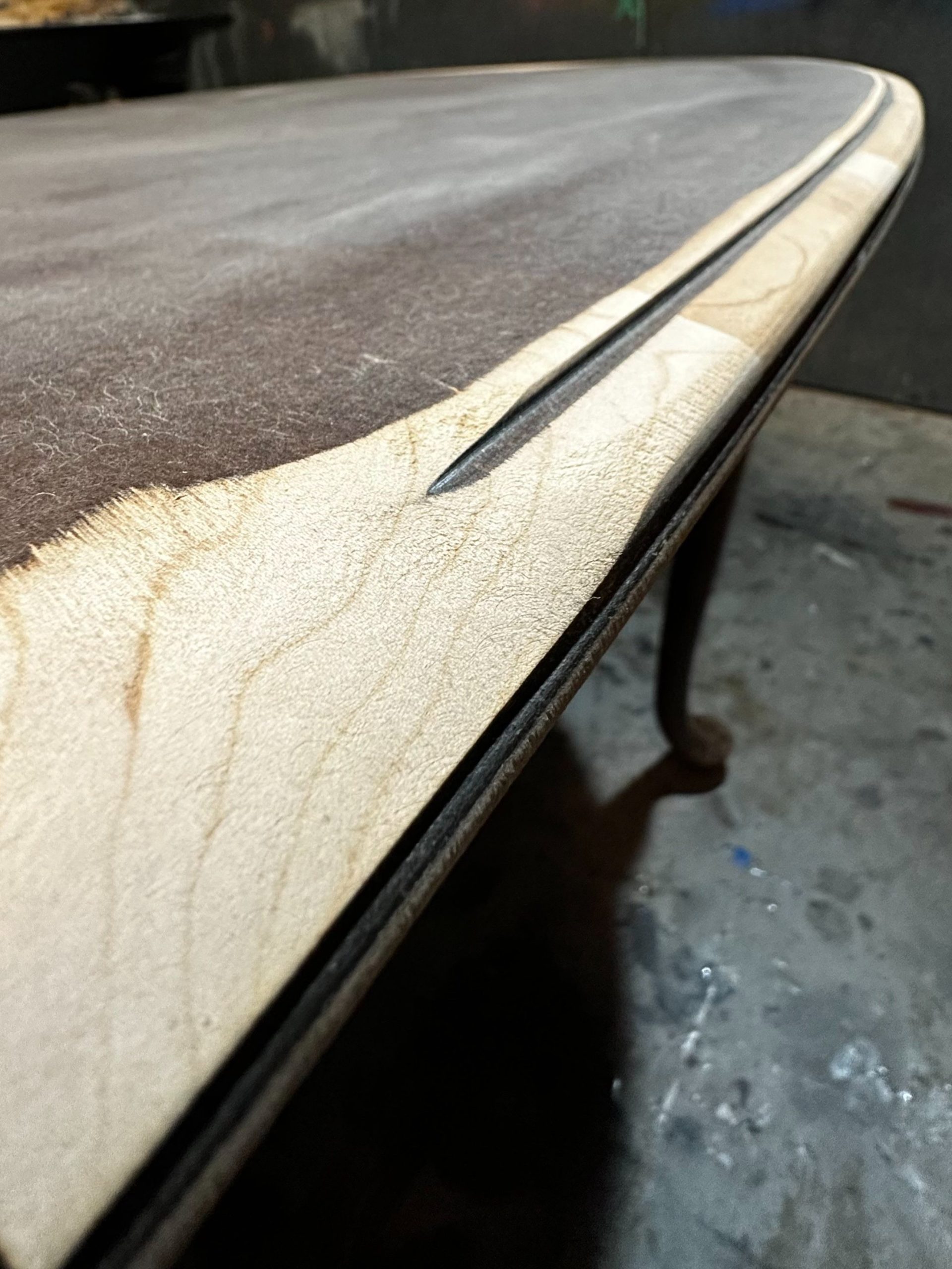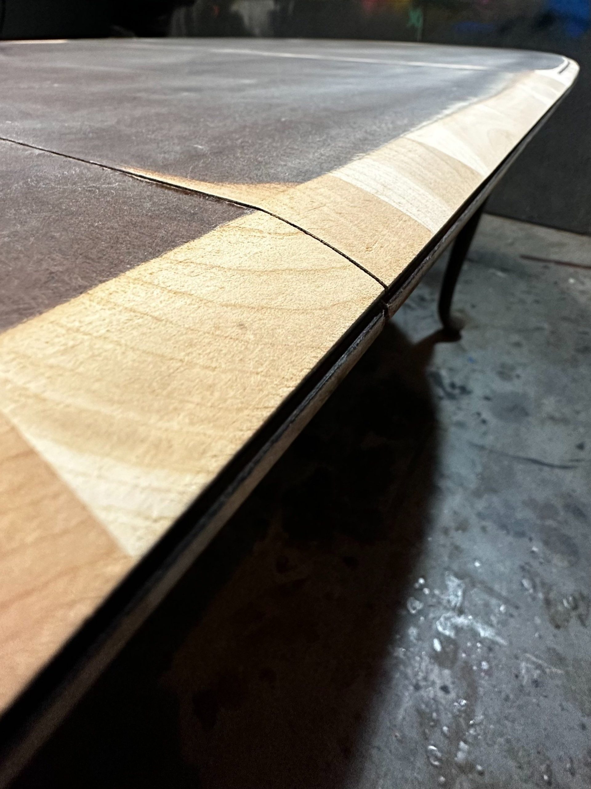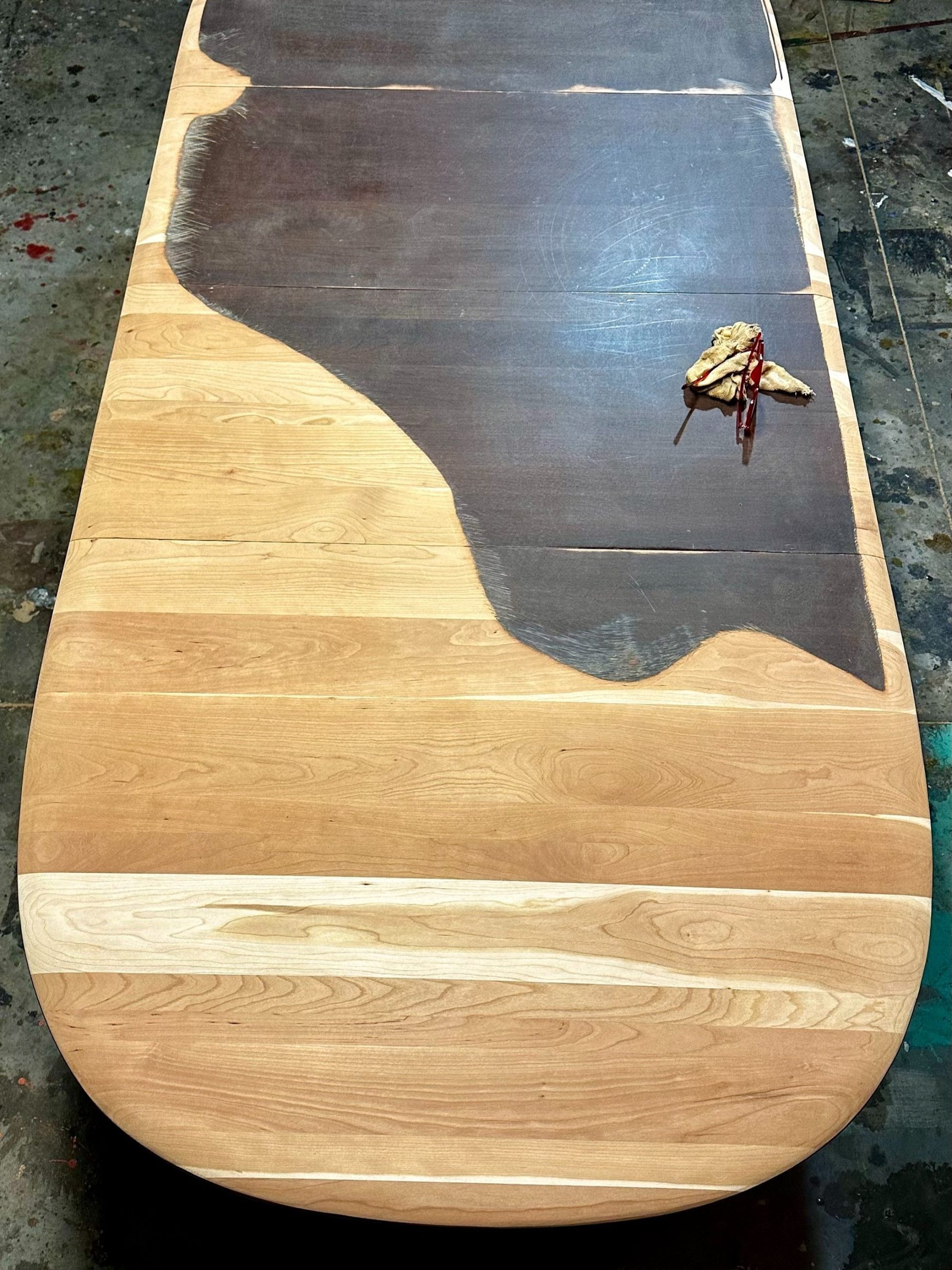 By Admin12 / June 26, 2025 the chillest of pills. a complete restoration down to the core cherry hardwood, followed by reshaping the edge profile into a sloping round-over. The cherry apron and sloping legs are textured and blackened with a light flame-char (Shou Sugi Ban) before the final finish.