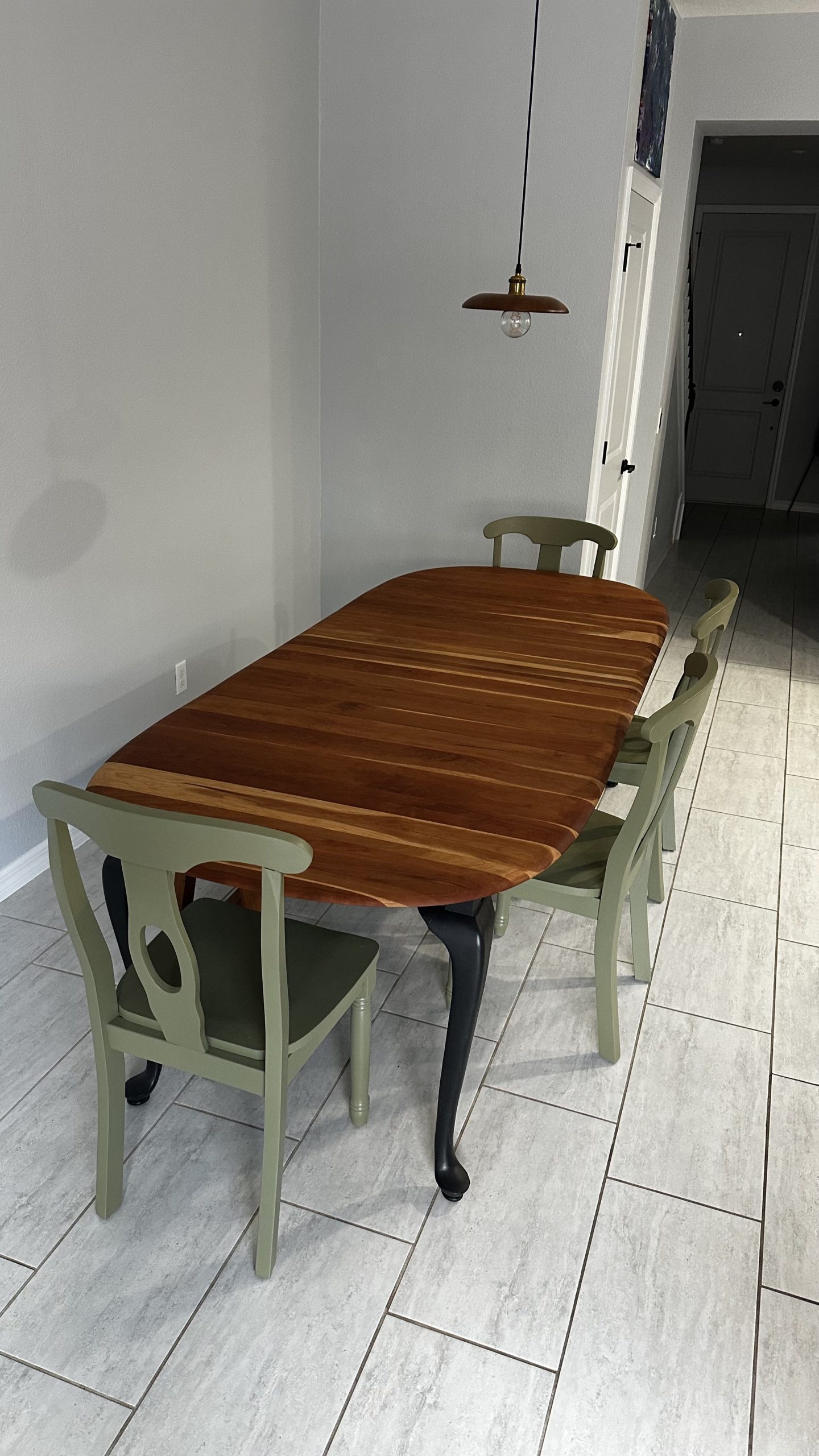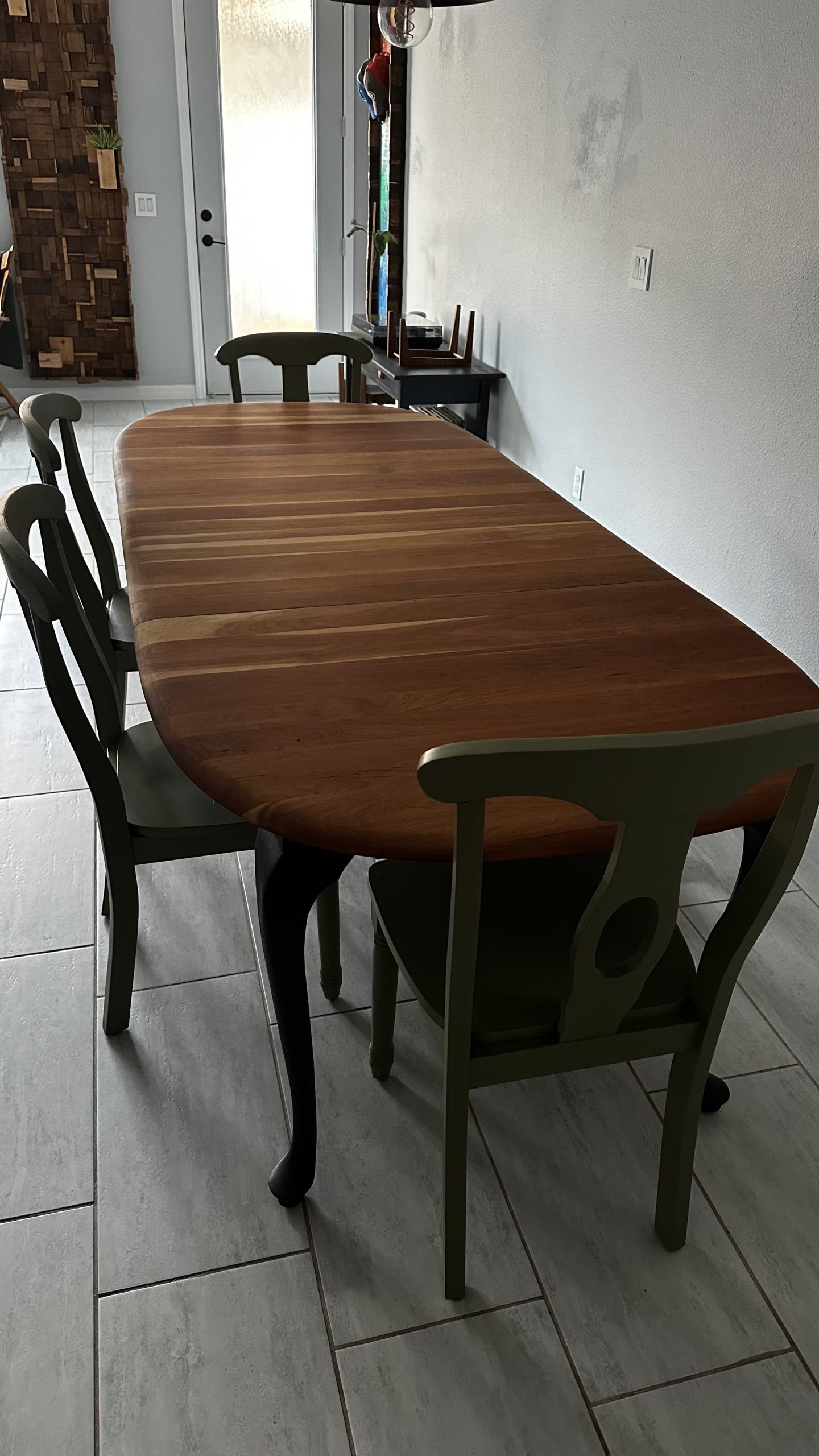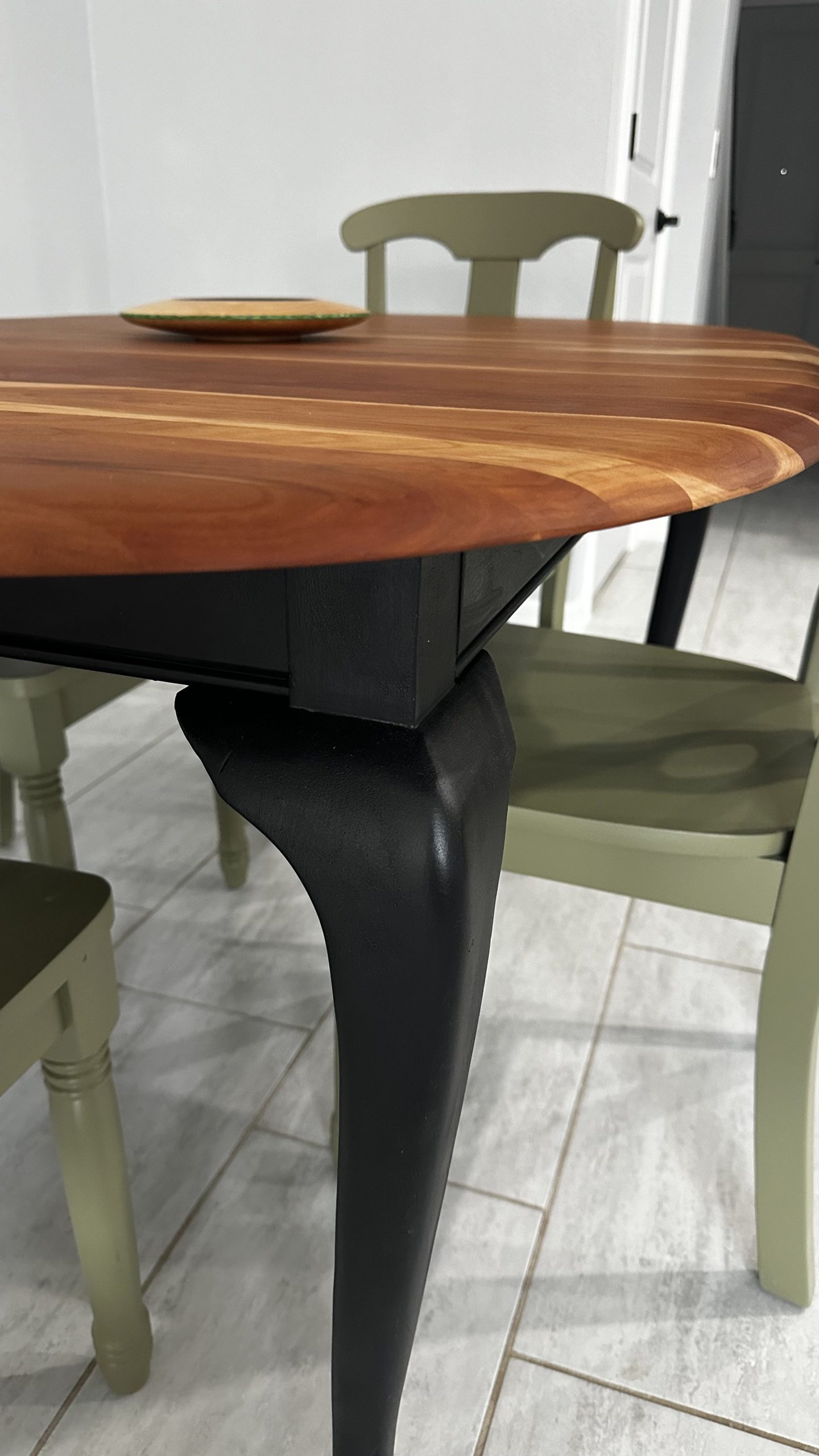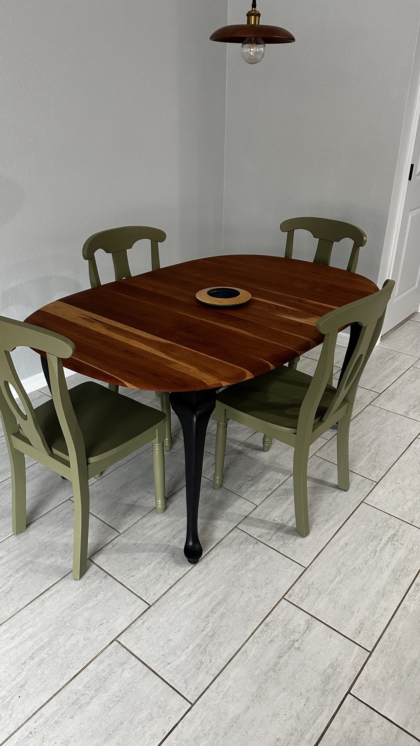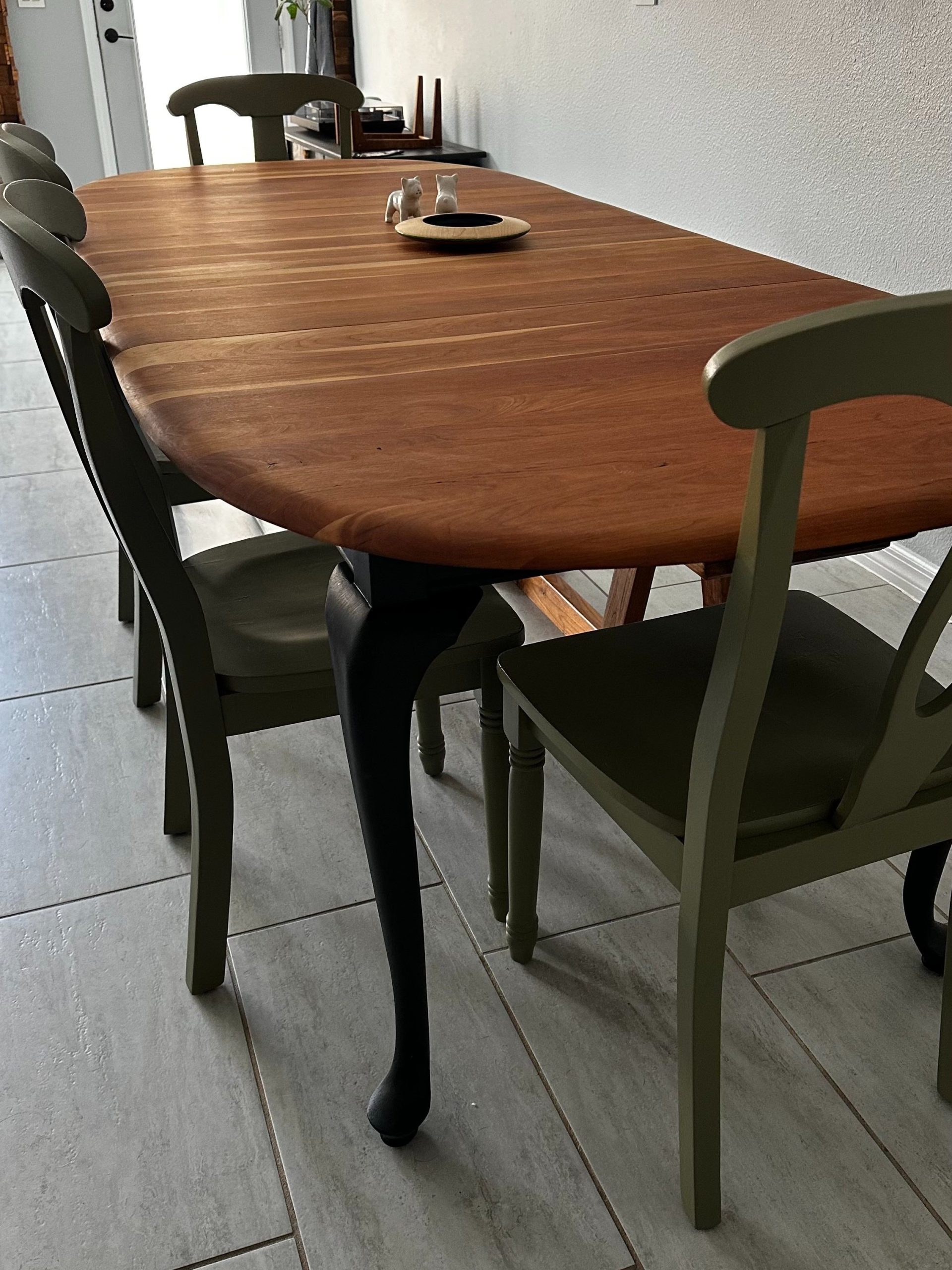 By Admin12 / June 26, 2025 the chillest of pills. a complete restoration down to the core cherry hardwood, followed by reshaping the edge profile into a sloping round-over. The cherry apron and sloping legs are textured and blackened with a light flame-char (Shou Sugi Ban) before the final finish.