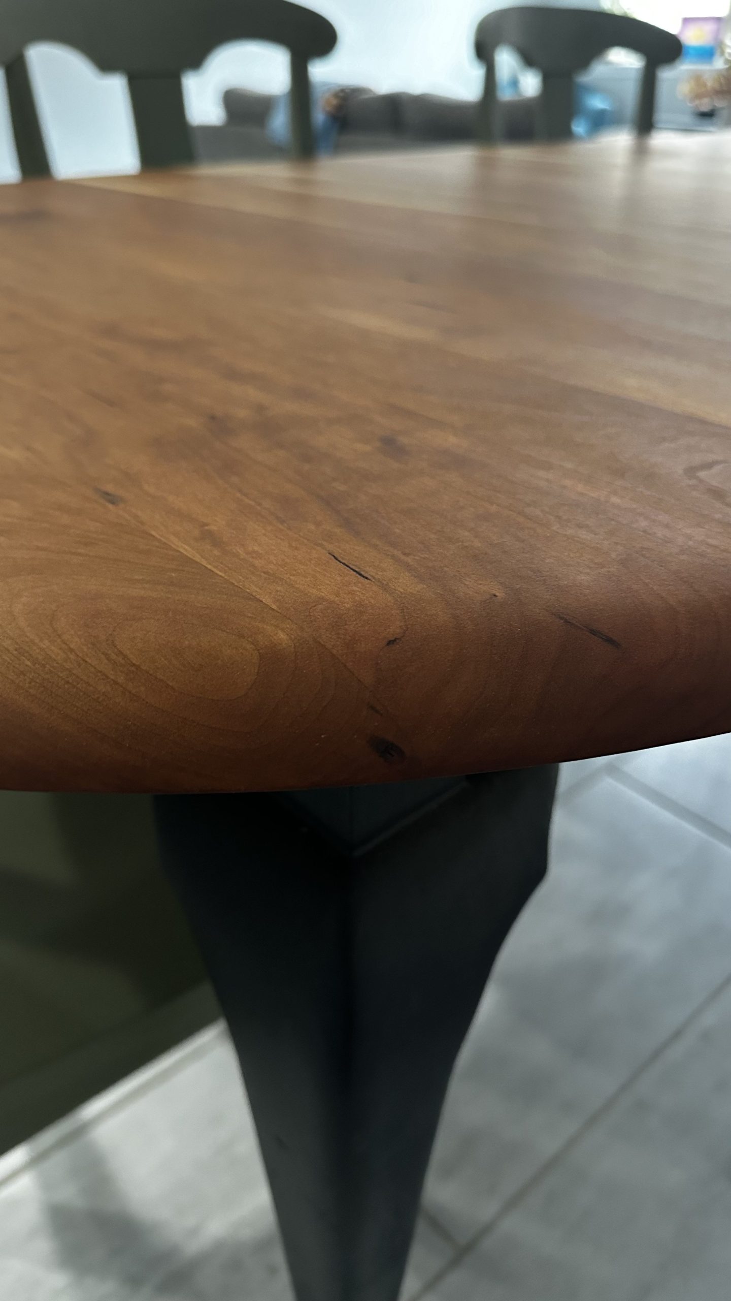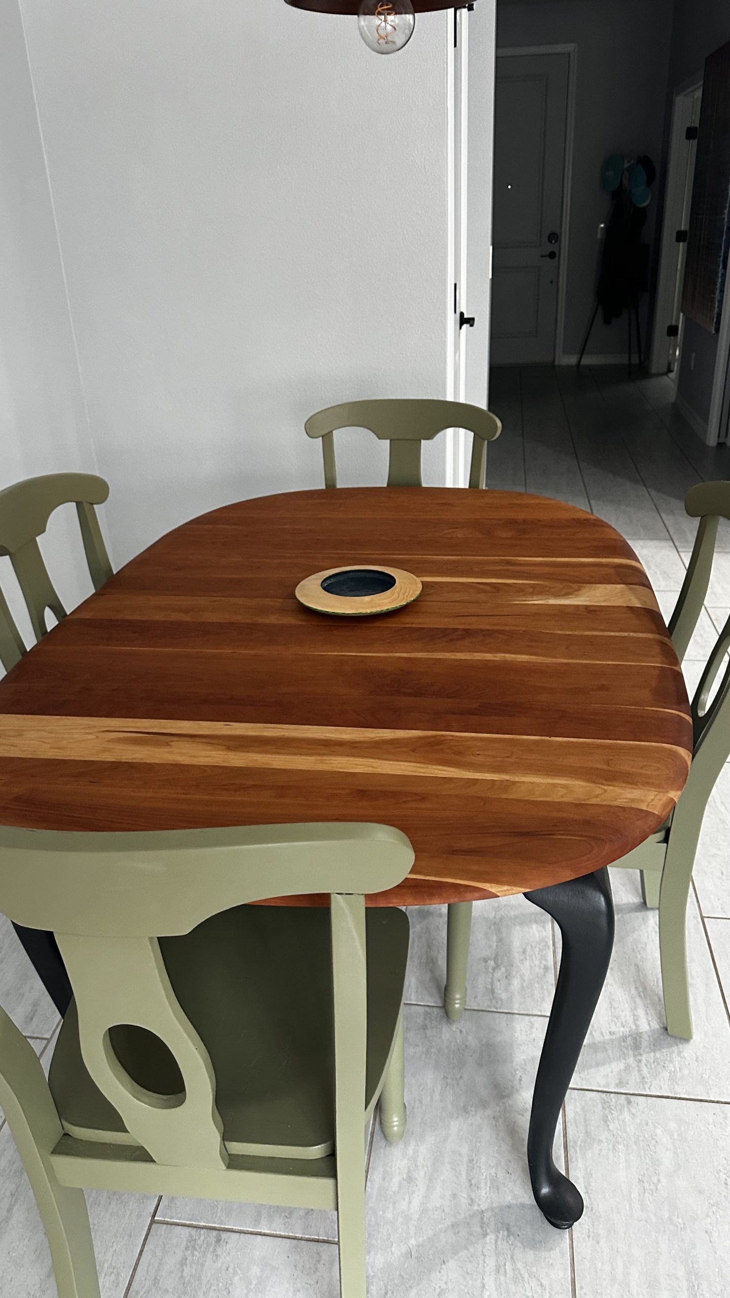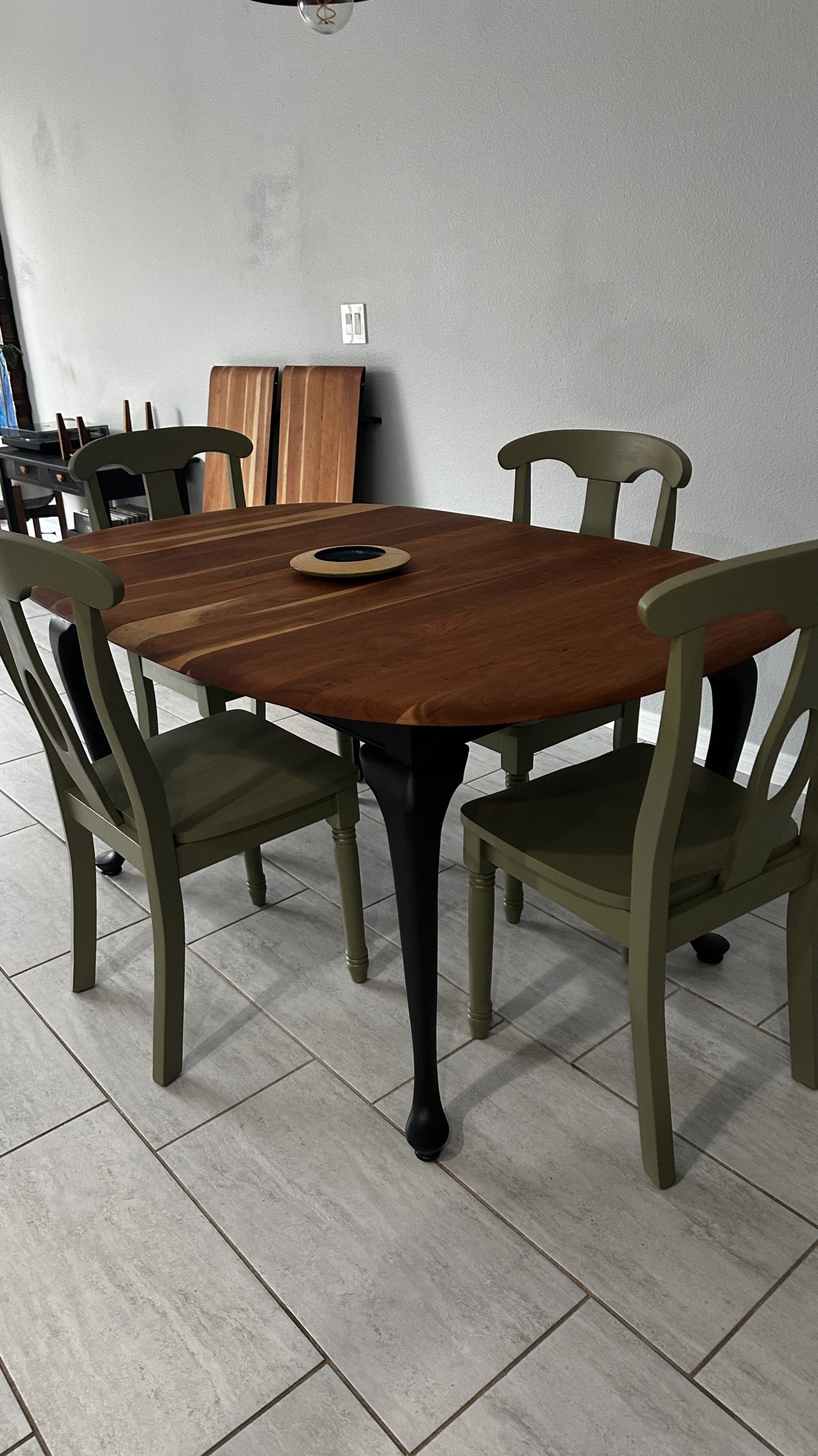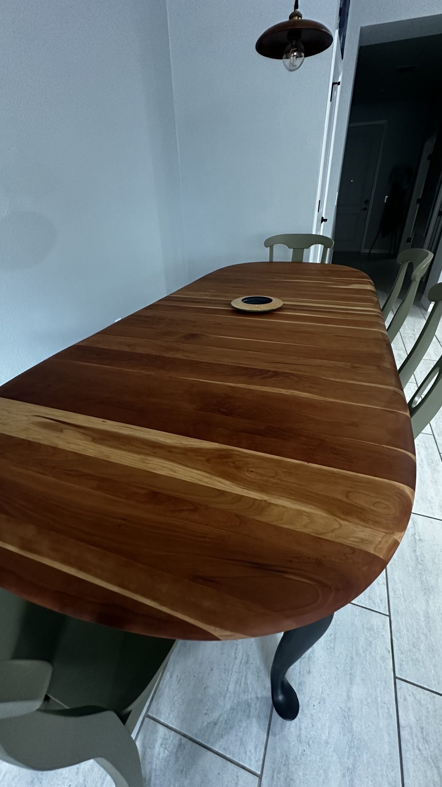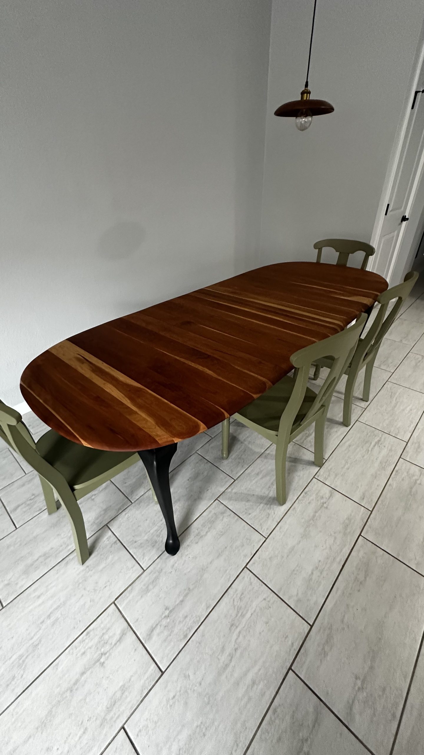 By Admin12 / June 26, 2025 the chillest of pills. a complete restoration down to the core cherry hardwood, followed by reshaping the edge profile into a sloping round-over. The cherry apron and sloping legs are textured and blackened with a light flame-char (Shou Sugi Ban) before the final finish.