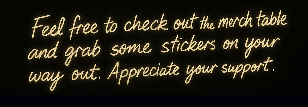 Drops No new drops at this time Feel free to check out the merch table or grab some stickers on your way out. Appreciate your support! The Blueprint$22.00 – $24.50Price range: $22.00 through $24.50 Select optionsArtisanal Joint Shop$28.00 Select optionsThe Fan Club$5.00 Select options Just some one-off designs I drop now and then. A fun little side quest and a way to say thanks for sticking around. Stay up to date on occasional hardline drops and pop-up events. I don’t spam. You’d be lucky to get two emails a year. Sign Up Enter Your Email(Required)