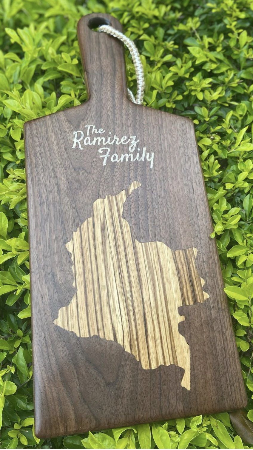 By Admin12 / June 28, 2025 Colombian beauty. Zebrawood Colombia silhouette inlay. Engraved w/ acrylic in walnut.