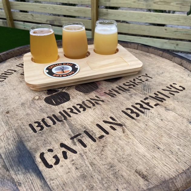 By Admin12 / June 27, 2025 Gatlin Hall Brewing Custom brewer flights made out of eastern white pine. Set of 50 custom carved to hold three tasting glasses and two insects to house a brewery sticker and information card on for each draft selected.