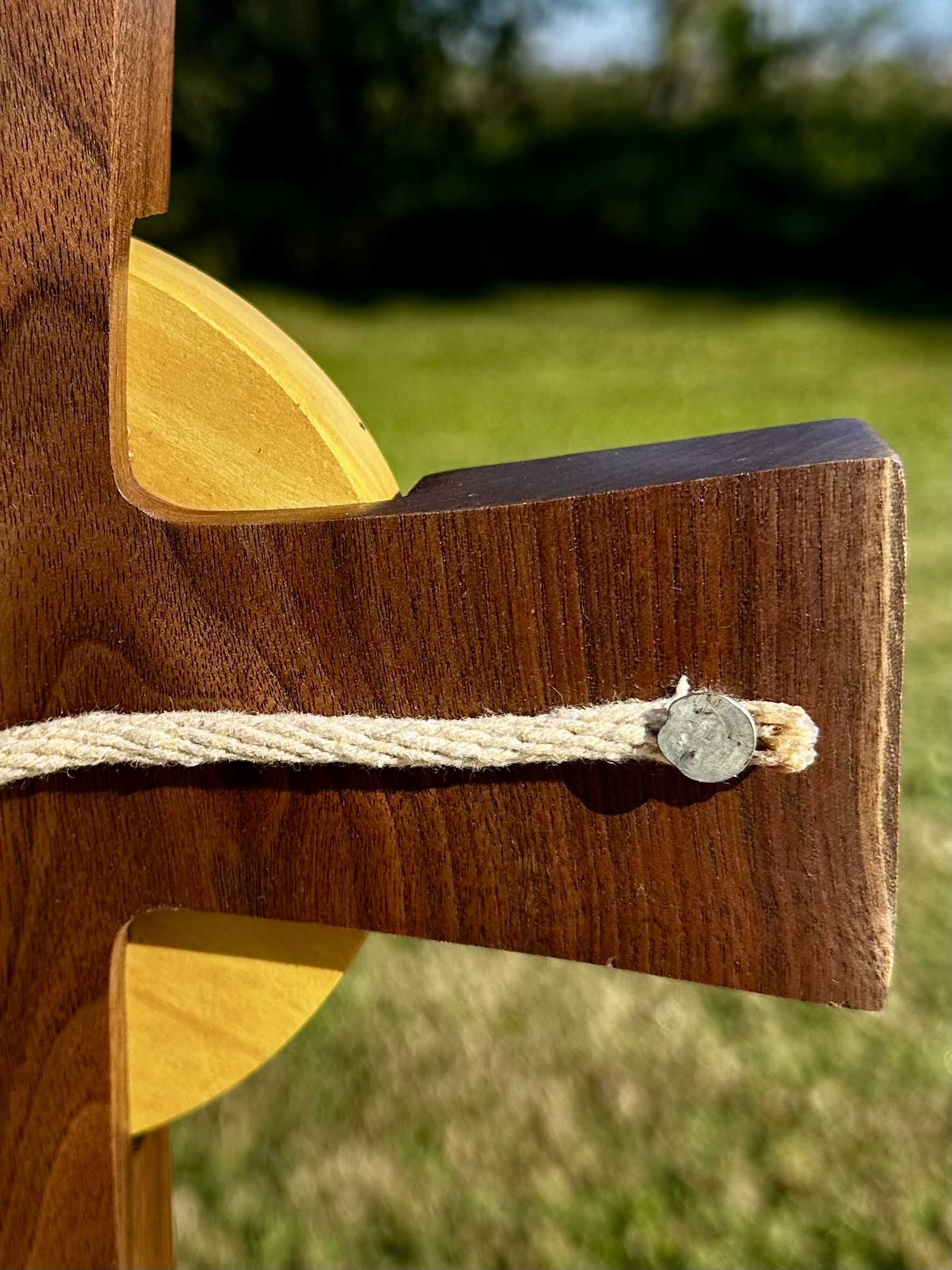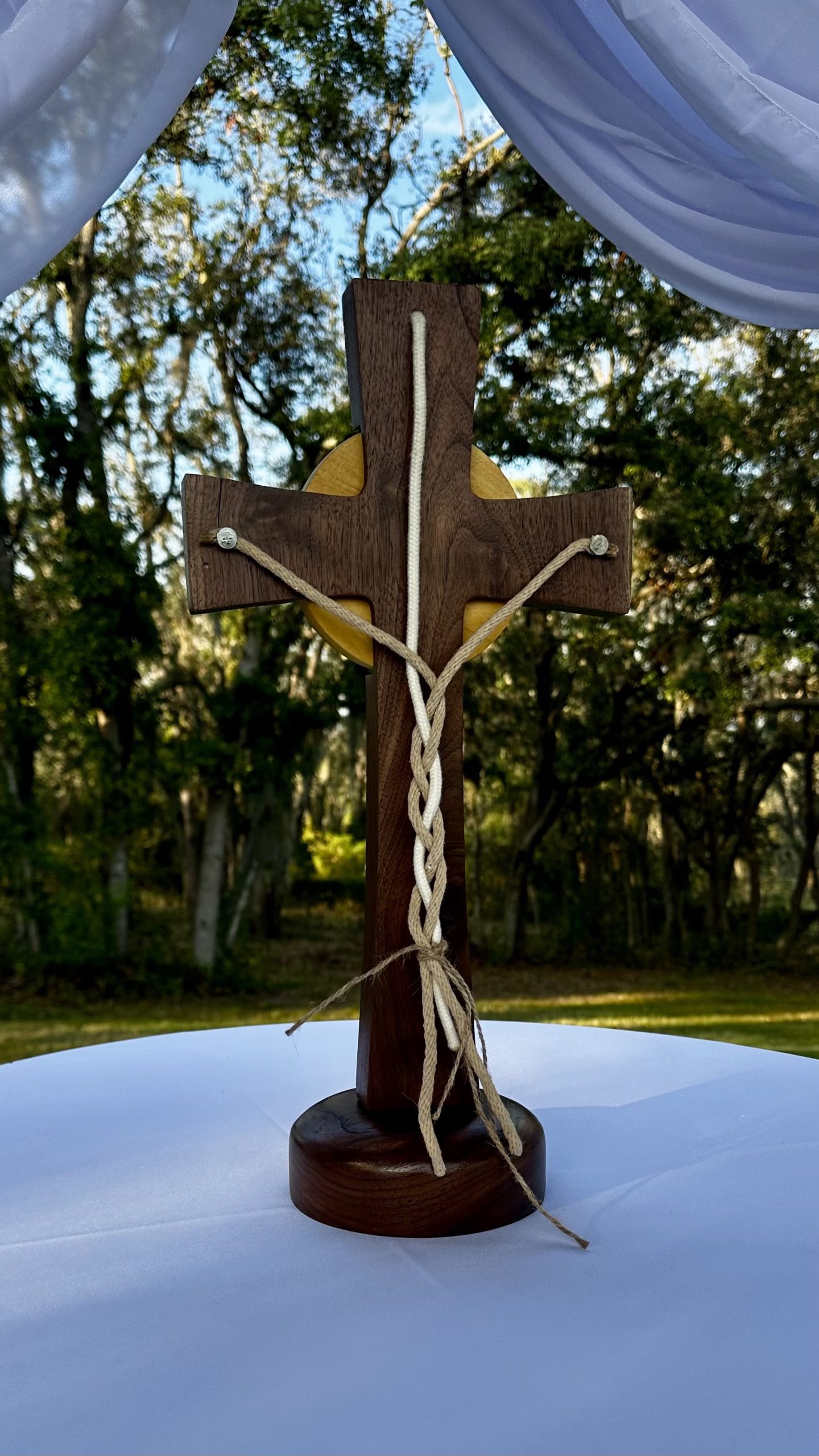 By Admin12 / July 28, 2025 they, did. Wedding Ceremony Unity Cross commission crafted from a small slab of black walnut and back inlayed yellowheart.
